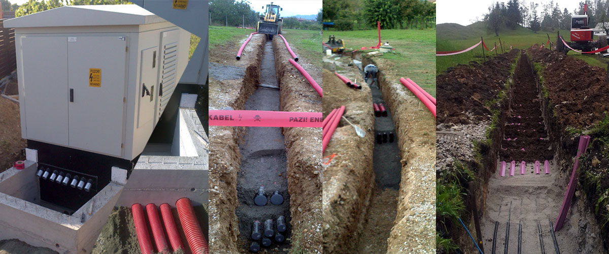 • Izgradnjo nizko in srednjenapetostnih kablovodov in nadzemnih vodov.